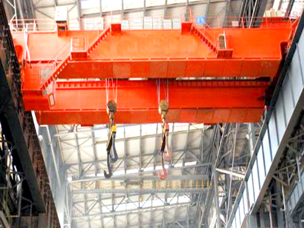 吊装10-20米长的型钢、轴类等物料时,双小车可调整间距后同步起吊,双钩分别承载物料两端重量,避免单钩吊装导致的物料弯曲变形。转运过程中通过同步调节起升高度与运行速度,保持物料水平状态,减少地面人员辅助校正环节,提升作业安全性。